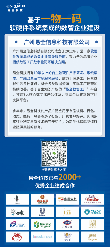 您好!非常感谢您对广州易全信息科技有限公司长期以来的关注和支持,第31届广州国际食品加工包装机械及配套设备展览会,将于2023年6月9日-6月11日在广州琶洲会馆举办。我司将在展会上通过物联网IOT平台进行现场演示企业如何实现产品的赋码-生产数据的采集关联-仓库发货管理-市场追溯查询-大数据分析的整体解决方案。